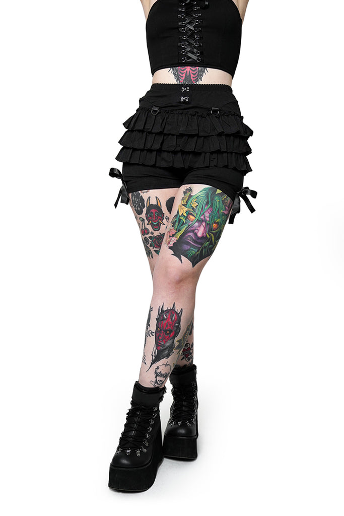 The Rosemary Bloomers are constructed of our signature ultra-soft stretch fabric with chiffon ruffles and ribbon details. Don't miss the faux garter top or the picot trim either! With a puffy fit and elasticated waist and legs, the bloomers are foolproof against riding up and offer an extremely comfortable fit for all body types. Nothing else could be more of a summer staple!