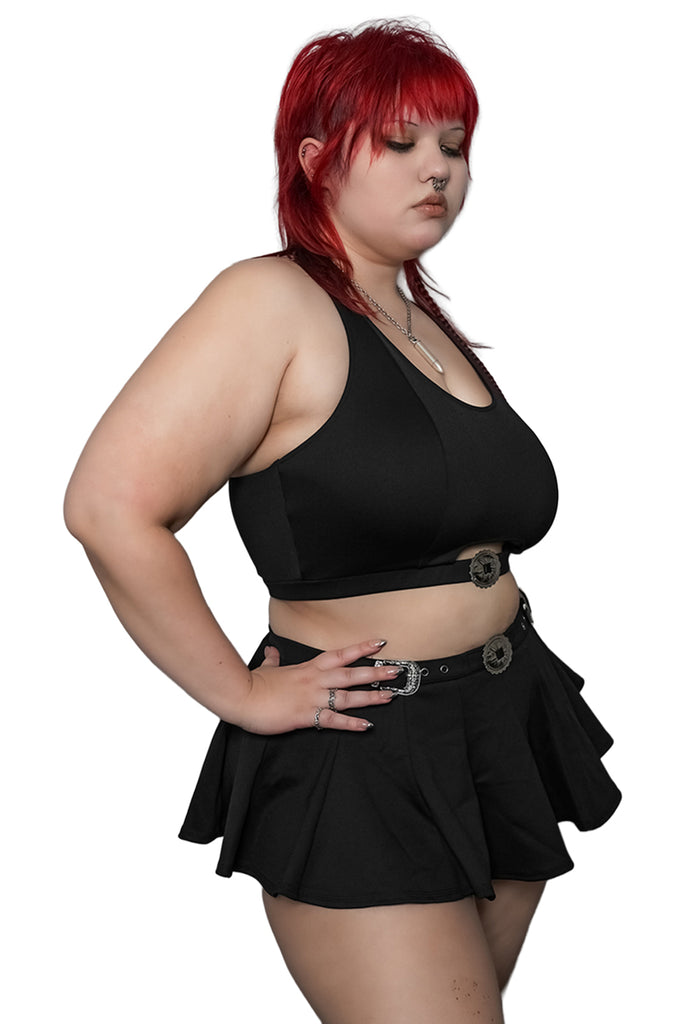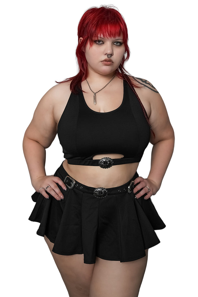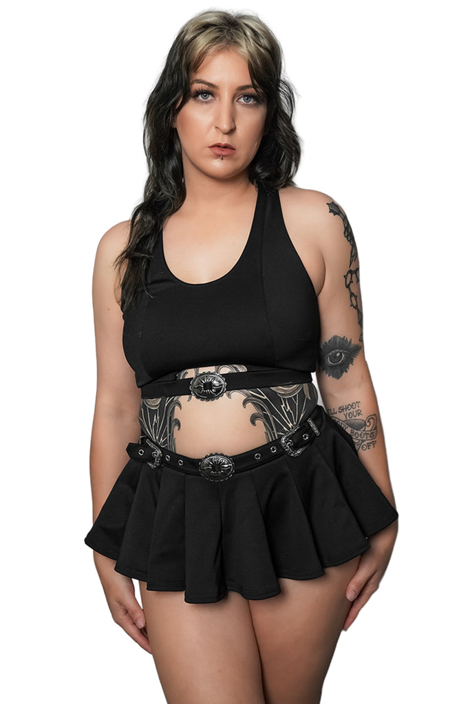 Dare to be wild with the new Daredevil Bikini Top! This bikini top is built for high support, with adjustable racerback straps, ample bust space, and a lower cutout that features concho details. Pair with the Daredevil Swim Skirt for the perfect matching set.